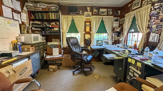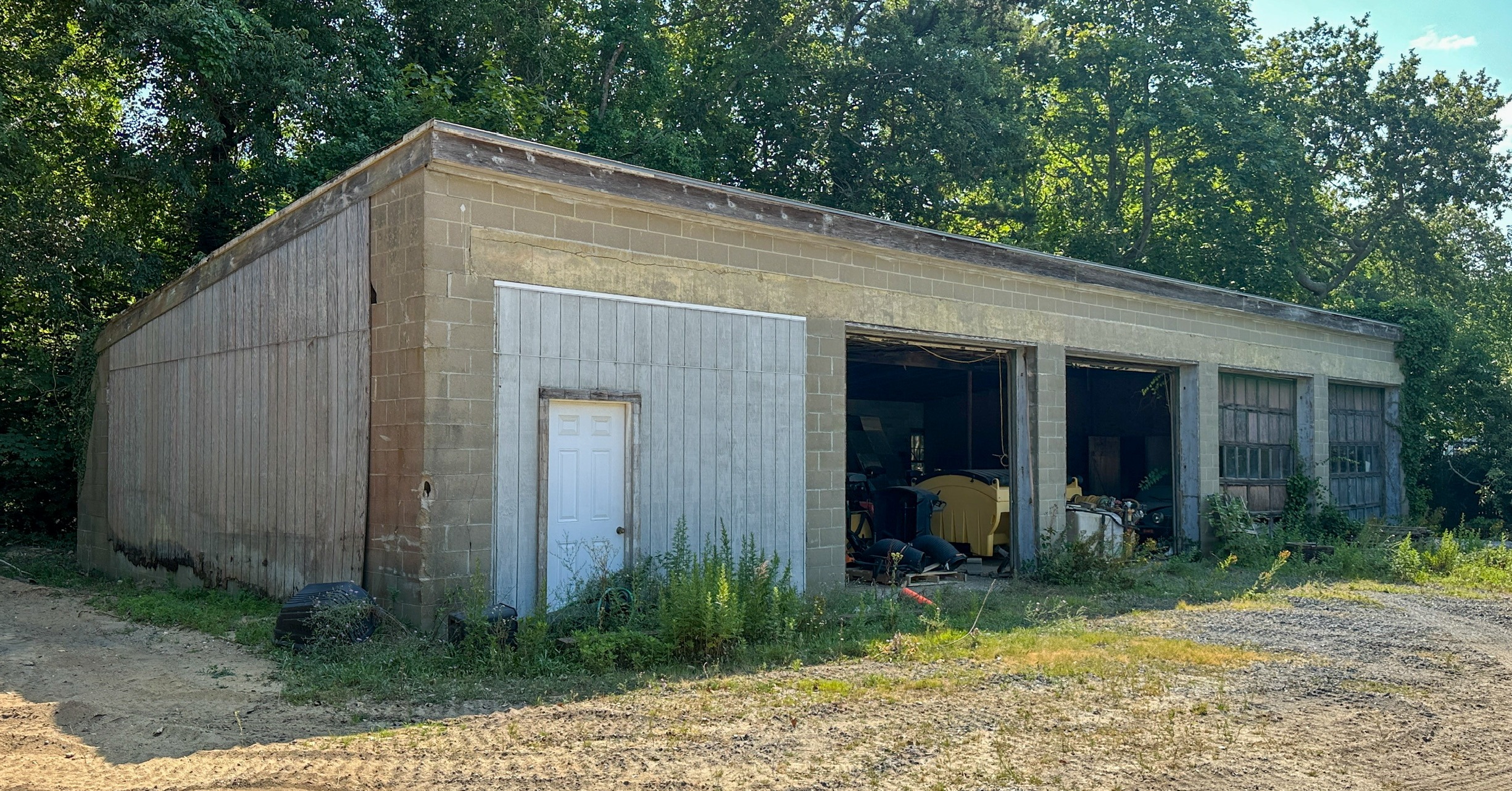 - Improvements: 3-story wood-framed office building (±581 sq. ft. effective area) plus multiple sheds, garages, and storage structures for equipment