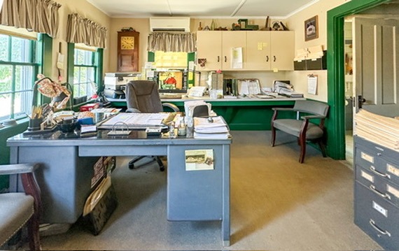 The sale also includes a commercial property that supports daily operations. The site offers office space, garages, sheds, and outdoor storage for vehicles and equipment.