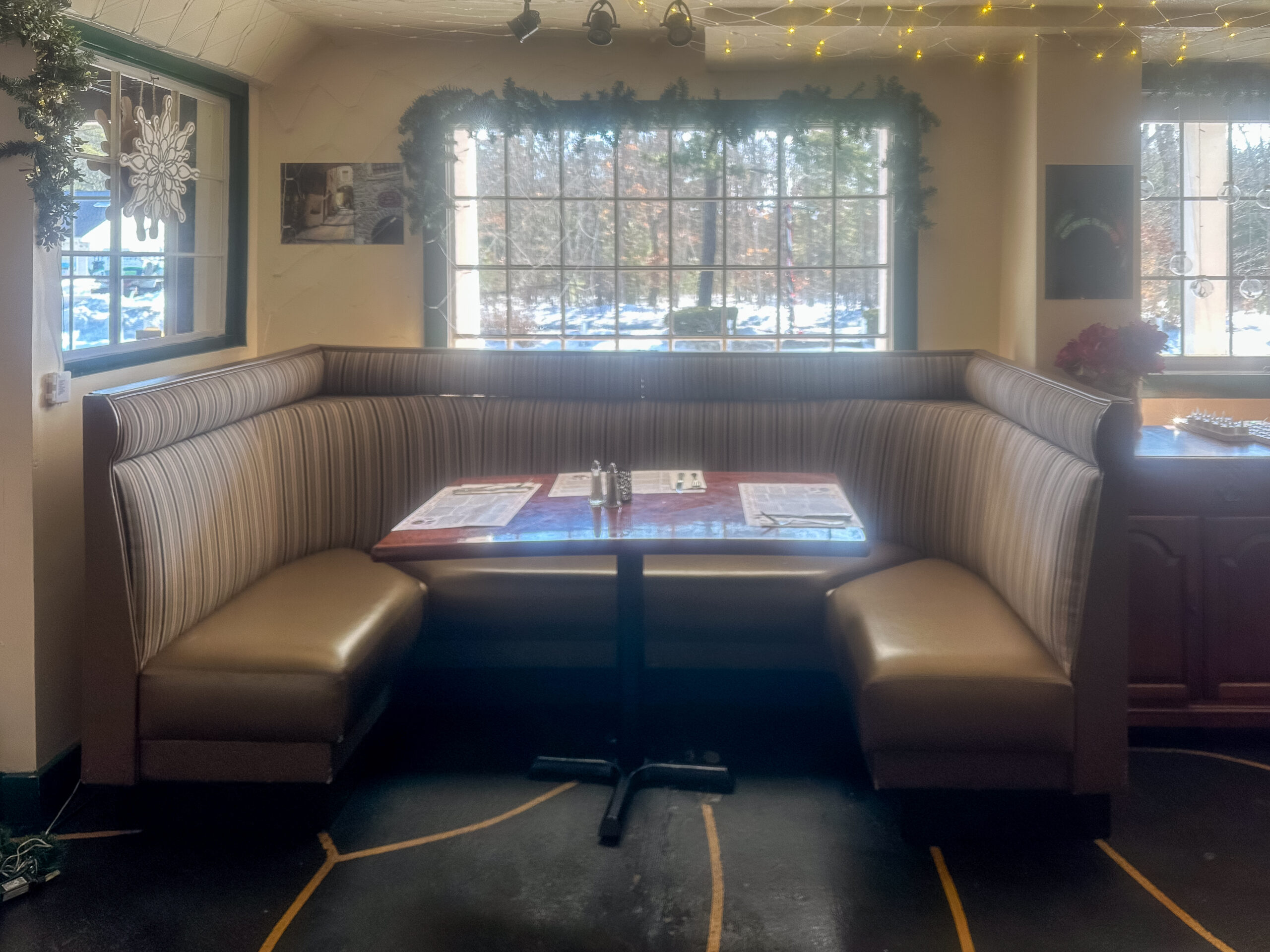 The restaurant includes a mix of traditional table seating and highly sought-after booth seating, creating a warm and welcoming atmosphere for guests.